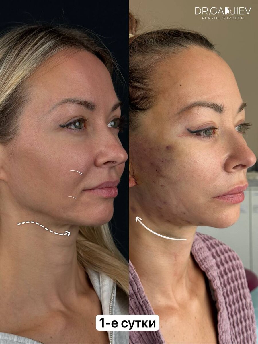 В 43 года получила «Бейби-фейс» 😍 ⬅️Моя очаровательная пациентка Надежда, потрясающе выглядит в свои 43 года. Сохранное лицо, с красивыми контурами, но гравитационный птоз никто не отменял и возрастные изменения очень сильно коснулись нижней-трети лица. В анамнезе пациентки были и косметологические манипуляции (нити, филлеры, полимолочка), и как следствие данные методы омоложения перестали давать нужный лифтинг эффект. ⬅️В данном случае мы выполнили только фейслифтинг без каких-либо дополнительных манипуляций. Листайте карусель и сможете посмотреть как меняется Надежда в реальном времени🙌🏻 #пластическийхирург #омоложение #фейслифтинг #круговаяподтяжка #гаджиевмагомед
