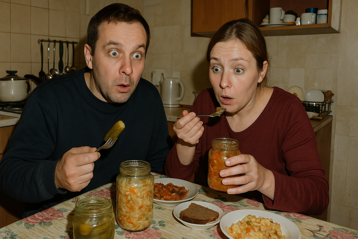 Попробовала — глаза округлились. Игорь тоже кусочек откусил и замер. Потом они всё содержимое сумки перепробовали. Салаты, мясо, варенье.
