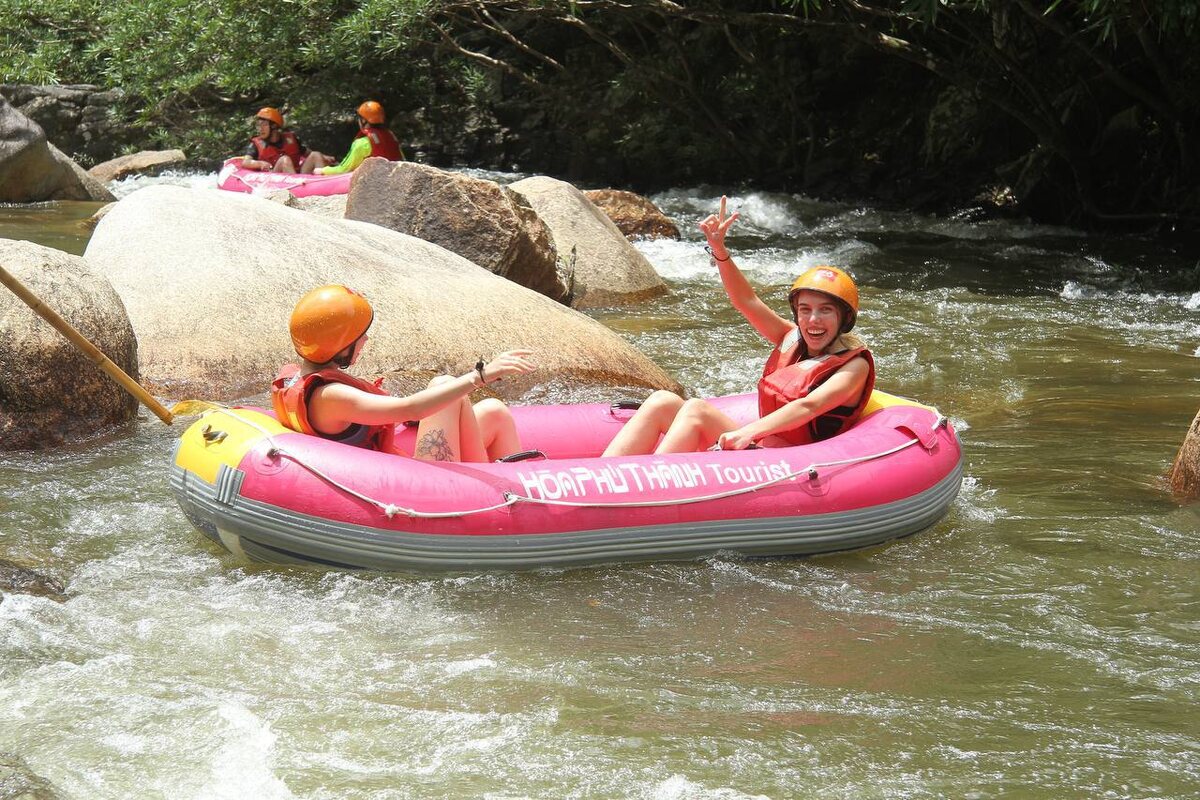 Съездили с подругой в Hòa Phú Thành - это огромная территория с кучей активностей. Вход стоит 150 000 донгов, и в эту цену уже включено: ✔️ Зиплайн (2 полета — очень круто, только не забудьте сухую одежду!) ✔️ Бассейн ✔️ Водная горка ✔️ Массаж ног с рыбками ✔️ Стрельба из лука ✔️ Много фотозон 🏓 За доплату можно поиграть в пиклбол ⏱ Старт - в 10:30 и 14:00. Мы приехали буквально за 15 минут до начала, ничего заранее не бронировали, просто купили билеты на месте и пошли на инструктаж. 🛶 Рафтинг проходит по горной речке: в лодке 2 человека, весел нет - течение само несёт вас по извилистому маршруту. Местные ребята с палками направляют и помогают, а с нами ещё была большая группа туристов, и получилось весело, шумно, с кучей толчков, смеха и драйва 😅 🎒 Что взять с собой: 🟠Сухую сменную одежду (на зиплайн в мокрой не пустят!) 🟠Купальник, полотенце 🟠Обувь, которую не жалко намочить 🟠Воду и перекус (если не планируете есть в кафе на территории) На территории есть палатки, глэмпинги,