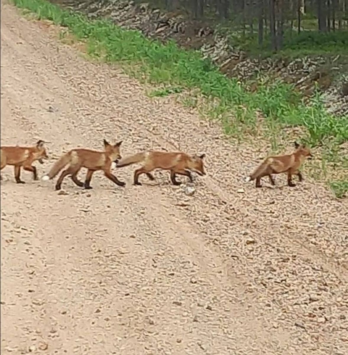 В Рязанской области заметили лисят, которые дружно переходили дорогу в мещёрском лесу. Кадры опубликовали в сообществе "Мещёрская природа". На фото видно пять малышей. Фото: Мещёрская природа.
