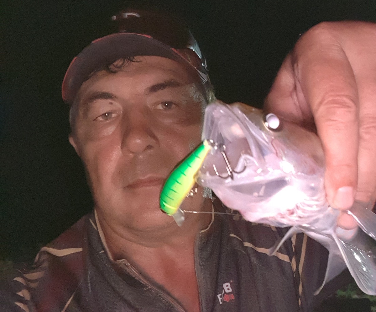 С тех прошло уже много лет. Я не раз ловил ночью судаков, как на Дону с лодки на джиг, так и на воблеры с понтона рыболовной базы. Как я уже говорил, случалось это не часто, но с каждым разом в уме вырисовывались новые тонкости ловли. Я уже не так категорично относился к тому, что нельзя светить фонариком в воду. На рыболовной базе я вообще ловил под ночным прожектором и поклевок было примерно поровну, как в освещенном месте, так и в тени. Воблеры я разловил самые разные, как минноу, так и кренки. По этой причине не могу назвать какие-то уловистые модели. А вот требования к спиннингу вырисовывались вполне конкретно. Необходим чувствительный бланк, который своей работой даст понять – работает воблер, в каком режиме, чиркает ли о дно и т.п. А поклевки – их ни с чем не спутаешь. Чаще всего судаки ночью атакуют весьма жадно.