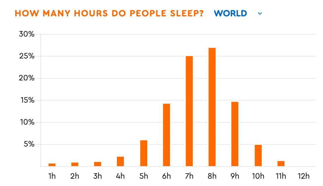 Сколько времени спят в мире? Занятный график, из которого следует, что подавляющее большинство людей (82%) спит от 6 до 9 часов. Час сна это нездорово в любом случае, а вот о том, как попасть в 2% спящих по 2-3 часа, мы уже готовим интересный материал. Оставайтесь с нами!