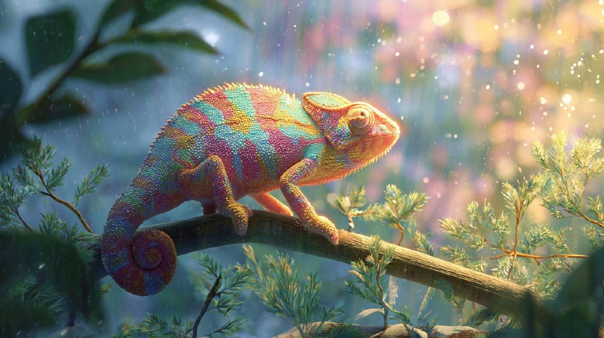 Вот я сижу на своей излюбленной ветке акации – да, той самой, что протянулась прямо к стеклу, – и наблюдаю за этим удивительным парадом человечества. Какие они все разные! И какие одинаковые одновременно. Сейчас передо мной застыла парочка влюбленных. Он что-то шепчет ей на ухо, она краснеет и смеется. А я невольно становлюсь розовым – от умиления, что ли. Хотя нет, скорее от зависти. Когда это я последний раз кого-то обнимал? Правда, у меня есть преимущество: я могу обнять сразу две ветки одновременно. Попробуйте-ка так! А вон тот малыш с воздушным шариком – он тычет пальцем в мое стекло и кричит: «Мама, а почему он зеленый?» Становлюсь ярко-зеленым. Пусть порадуется. Дети — они же чистые, как утренняя роса на листьях баобаба. Хотя баобабов у нас в террариуме нет, но поэтический образ требует жертв. Вы знаете, я иногда думаю: а не завидую ли я им, этим двуногим созданиям? Они ходят, куда хотят, любят, кого выберут, едят что придумают. А я? Я художник цвета, маэстро мимикрии, виртуо