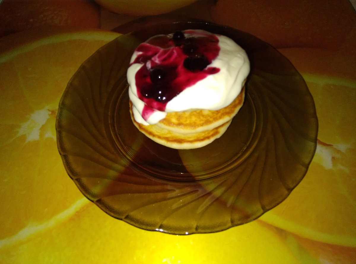9. Подать оладьи к столу горячими с различными топпингами ( сметана, джем, варенье, мёд, сгущёнка ).