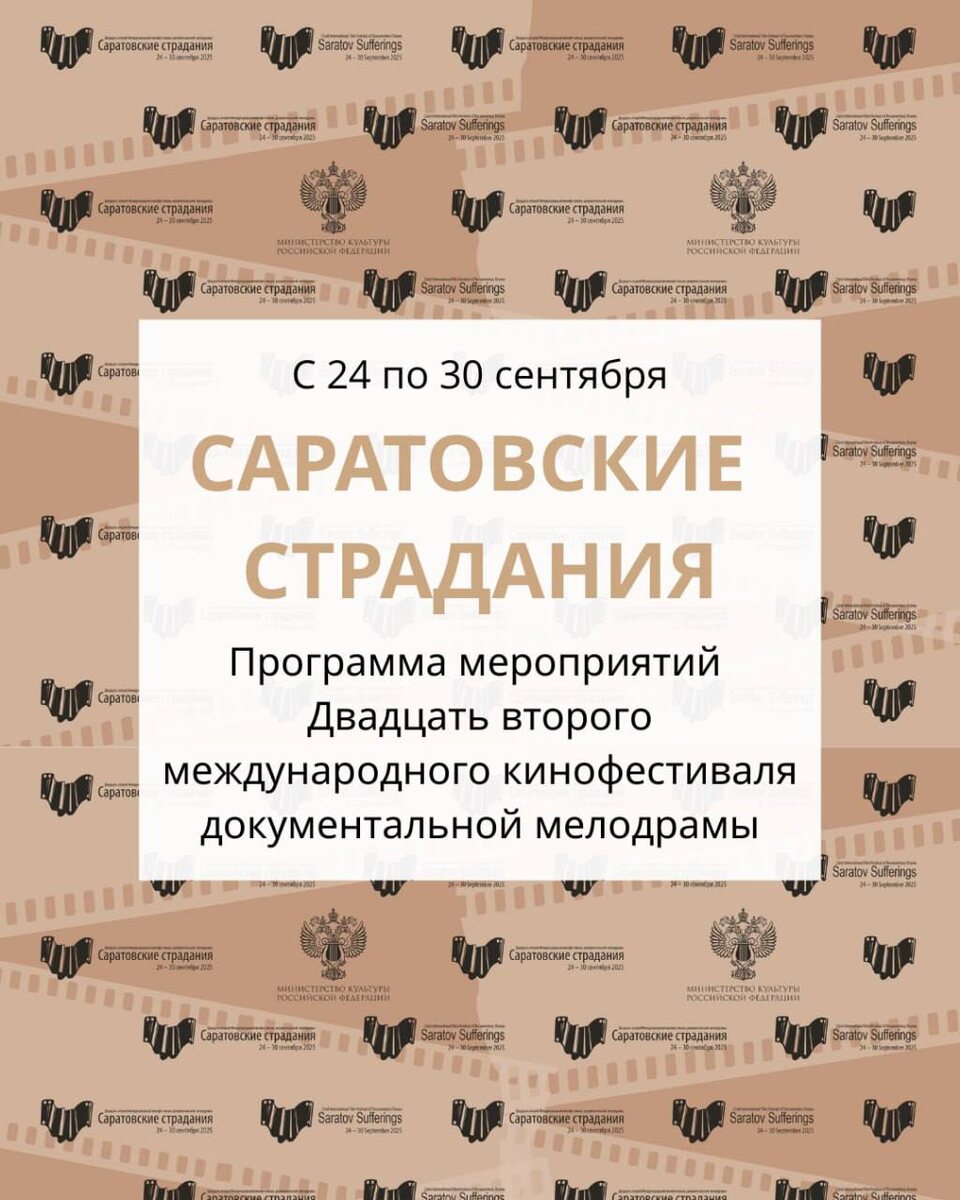 В среду, 24 сентября, стартует кинофестиваль «Саратовские страдания». 💻Полная программа есть на сайте (тык-тык). Оперативная информация по встречам и показам будет в Telegram-канале (тык-тык). Сегодня Дом кино не работает, наводят марафет перед фестивальными показами. Вход на конкурсные показы свободный. «Саратов: Открылось/Закрылось» - информационный партнер и дружочек фестиваля 💛