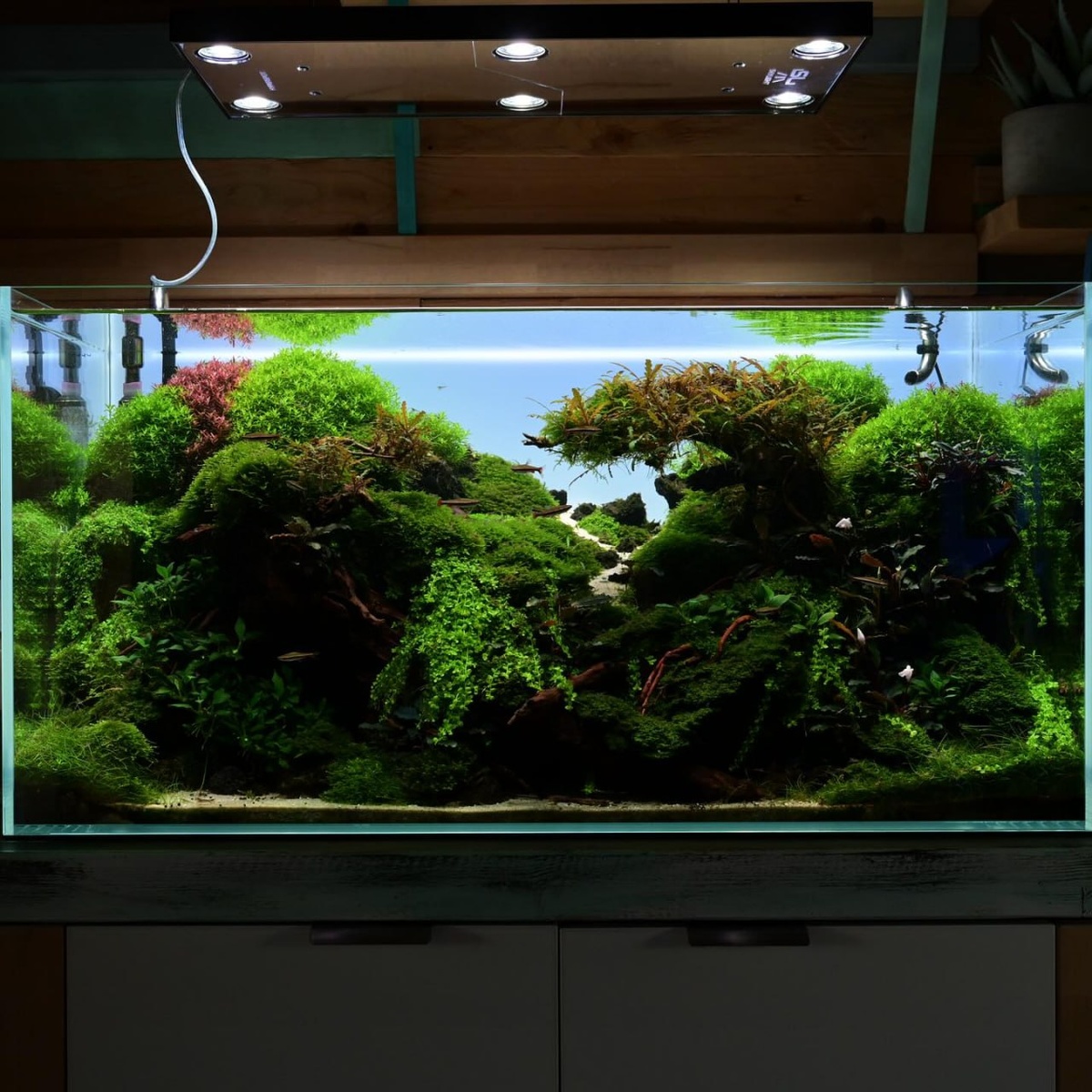ЗАЙДИТЕ В ГОСТИ К ВОЛЬКЕРУ: ЕГО АКВАРИУМ КАК ЖИВАЯ КАРТИНА 🔥 Перед вами частный гибридный голландский акваскейп, который превращает аквариум Oase ScaperLine 90 в ожившую фотографию — синтез классического #ГолландскийАквариум и современного #Акваскейпинг. Волькер выстраивает композицию как фотограф: многослойные планы, создающие эффект «водопада», чистый передний план из песка (как разрушенная речная отмель), визуальная дорожка и два доминирующих корня для придания глубины. Хардскейп — это комбинация премиальной чёрной лавы из Исландии и утопленной в композиции коряги. Хотя объём аквариума составляет 180 литров, высокий склон оставляет всего около 100 литров чистой воды — это сознательный выбор ради идеальной композиции и контроля течения. ГРУНТ И КОМПОЗИЦИЯ Волькер поднял дно с помощью лавовой крошки и покрыл её сойлом для контроля питательных веществ и развития корней. Он оставил передний план открытым для перспективы, разместил эпифиты на среднем плане и создал массу на заднем с