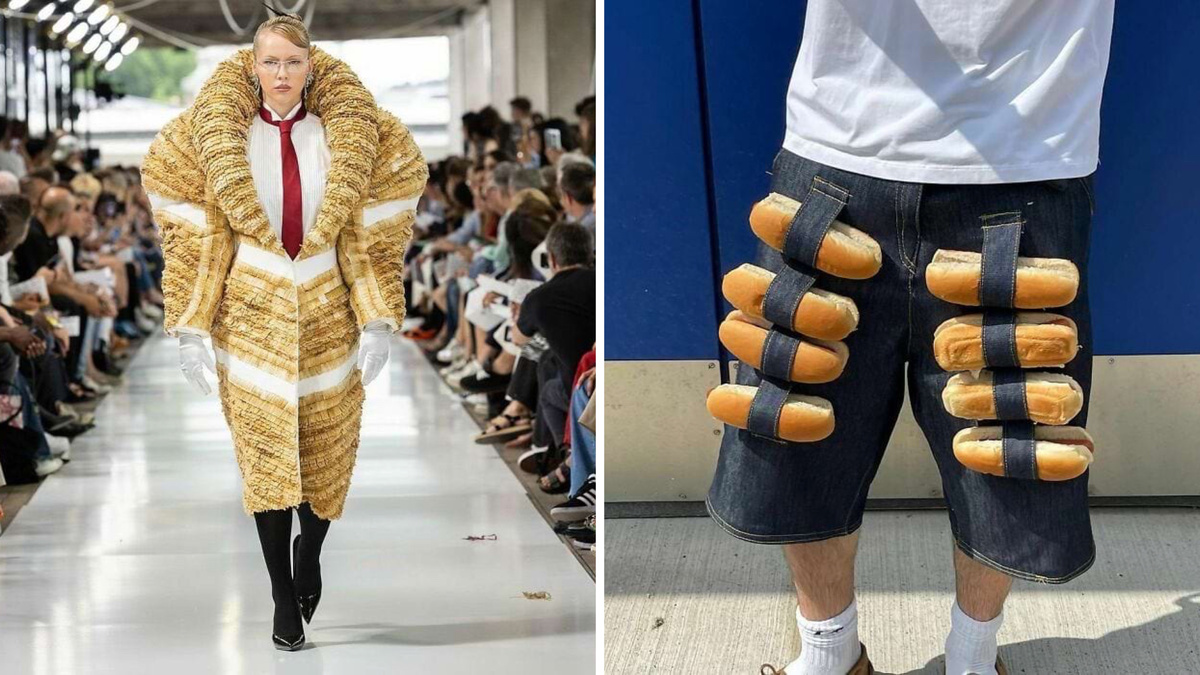 Вы из тех, кто следует моде? Тогда готовьтесь к серьезным испытаниям! Ведь модная вещь часто может быть неудобной, странной, смешной и вообще вызывать неприятные ассоциации. Давайте знакомиться с самыми безумными идеями дизайнеров, которые нашли свое воплощение в жизни. Потому что наливаем мы прямо в туфли, а коктейльные трубочки торчат из носа обуви. Знаем, звучит отвратительно. Тогда давайте посмотрим на кроссовки-щетки. Вместо подошвы там яркая синяя щетина. Как в них ходить? Ну это вопрос второстепенный! Помните гоголевского Вия? У него глаза закрывали веки, а тут девушка решила закрыть их челкой. Надеемся, что когда она переходит дорогу, то все же смотрит настоящими глазами, а не нарисованными. Вот такая замечательная футболка! К ней так и просятся брюки-пиццы или шорты-чипсы на закуску! Особенно внушительно такая футболка будет смотреться на корпулентных мужчинах. А вообще смешные (ужасные) футболки, которые так любят наши мужчины – отдельный вид искусства (позора) Посмотрите хо