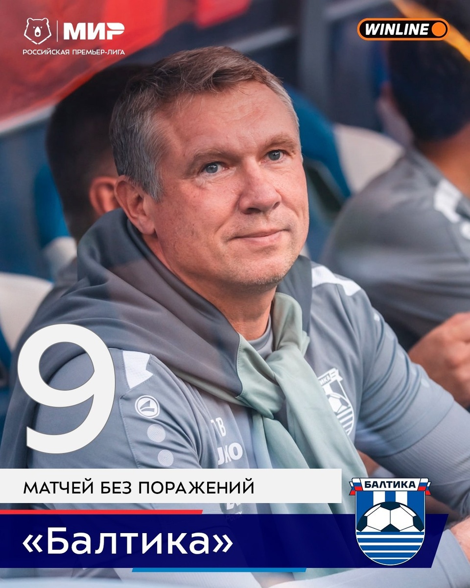 Вчера «Балтика» переписала одну из страниц истории РПЛ — команда выдала девятый матч подряд со старта без поражений. Среди команд, которые вышли в нашу лигу, лучшая стартовая серия была у «Сокола» в 2001-м — 8 матчей 💪