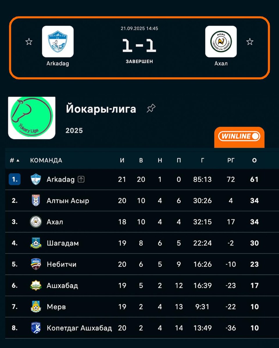 🇹🇲🇹🇲 Аркадаг впервые в истории чемпионата Туркменистана потерял очки