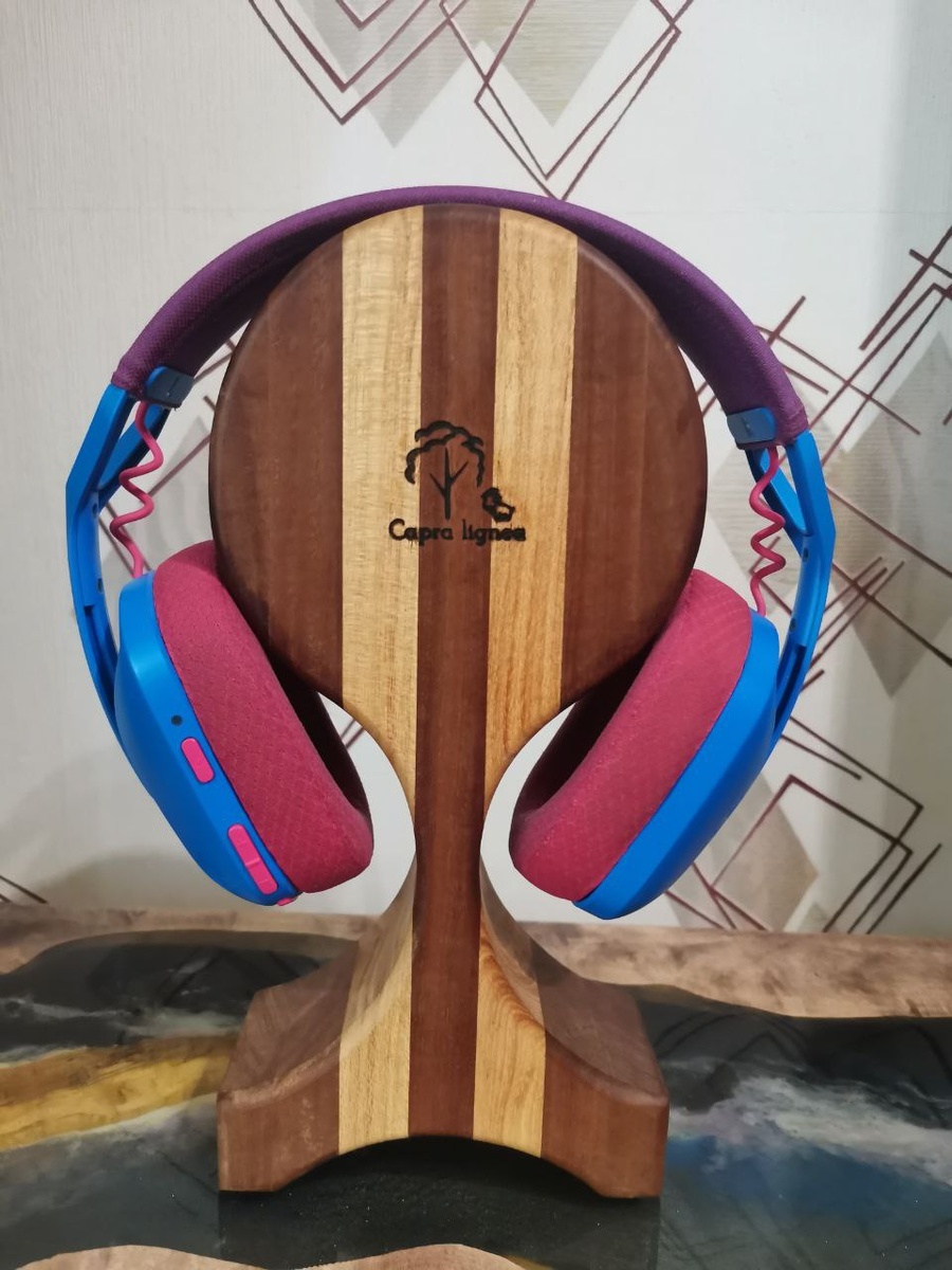 Элегантная и практичная подставка для наушников, выполненная из натурального дерева, станет стильным дополнением любого рабочего