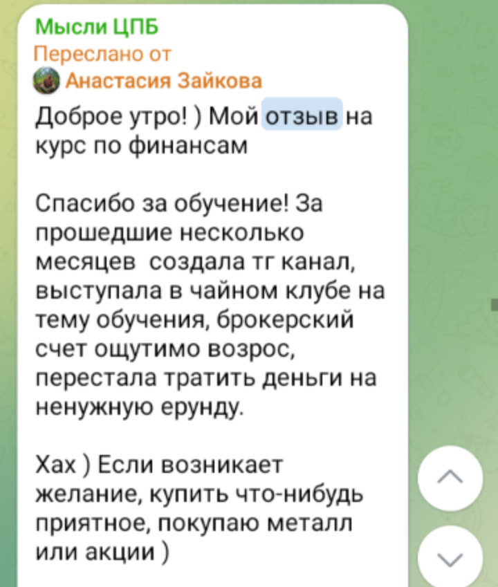 Сегодня у нас один стрим с финансового курса будет доступен для всех за плату. 1000 р. стоит запись стрима. Так что сегодня стрим, но не для всех. Стрим про деньги для тех, у кого есть деньги. История лидерства и богатства. Как появились методички и книжечки по лидерству и богатству. Стрим в 20.00 по МСК. Но. В закрытой группе, куда вы никак не можете попасть. Но вы можете приобрести этот стрим, если вы хотите понять, о чем финансовый курс, который начнётся 15 октября. Пишите @billions800. Если вам нужна запись платного стрима... А вот подборка с отзывами о курсе.