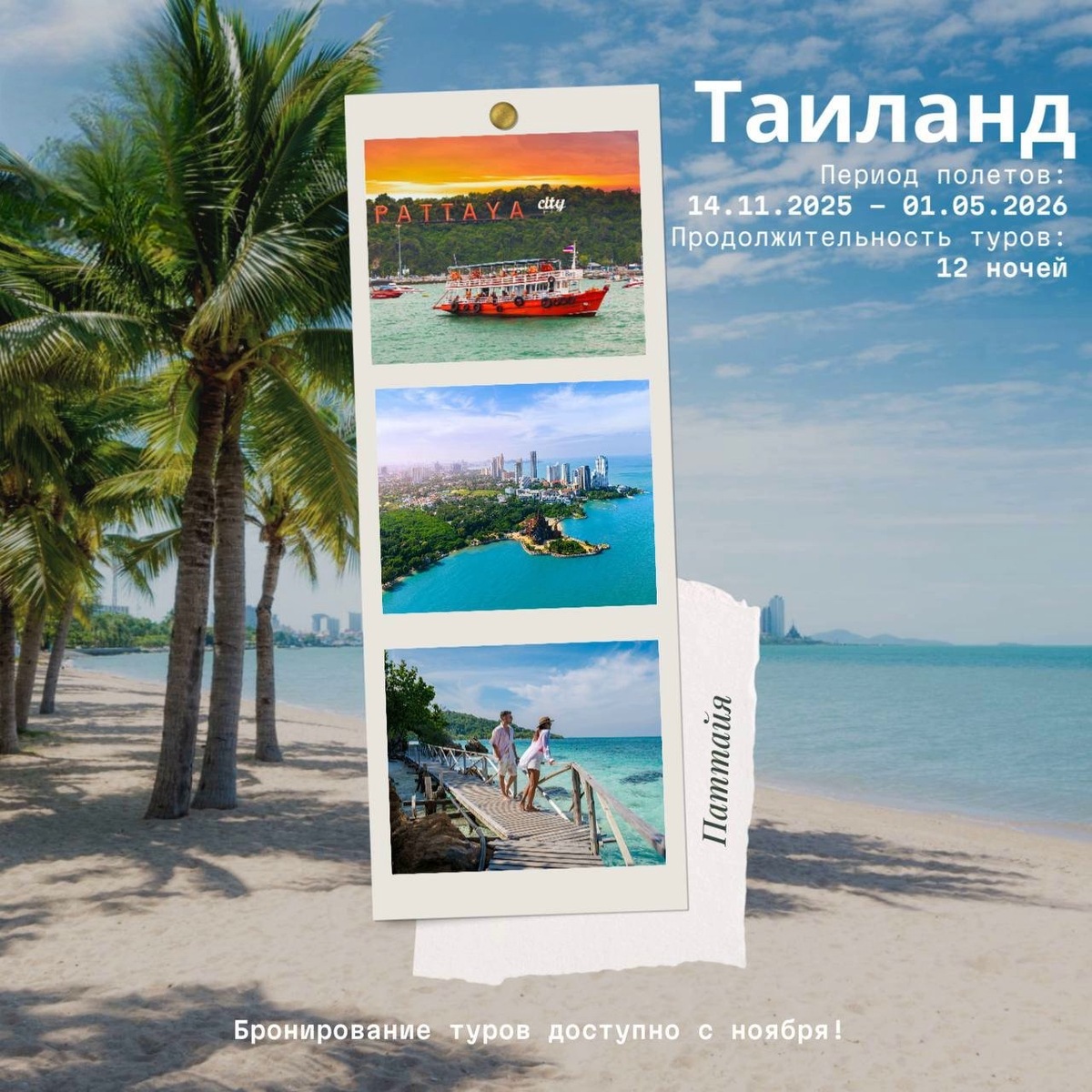 🐝🐝🐝🐝🇹🇭Таиланд: Паттайя. Расширили полетную программу. Бронирование туров доступно с ноября! ➡️Направление: Таиланд: Паттайя 🇹🇭 ➡️Период полетов: 14.11.2025 – 01.05.2026 ➡️Аэропорт прибытия: Паттайя ➡️Город вылета: Красноярск ➡️Продолжительность туров: 1️⃣2️⃣ночей 🔍Подробнее https://edinyicentrturizma.ru/ Информация в мессенджеры: 89835080038, 89130300848, 89832690848 #ЕдиныйЦентрТуризма