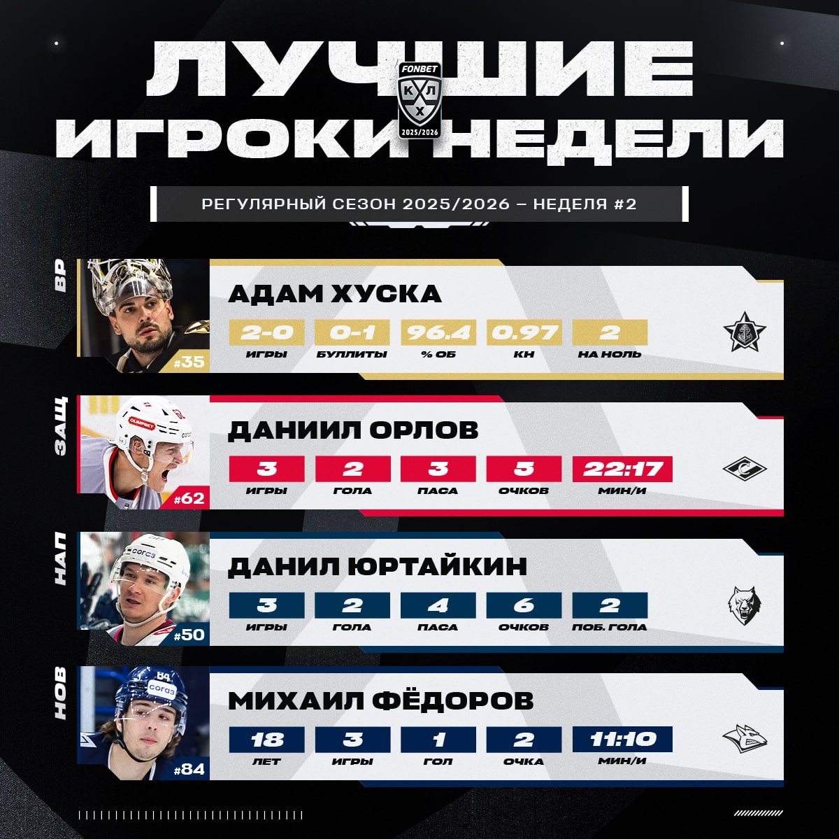 лучших игроков второй недели сезона 2025/2026.