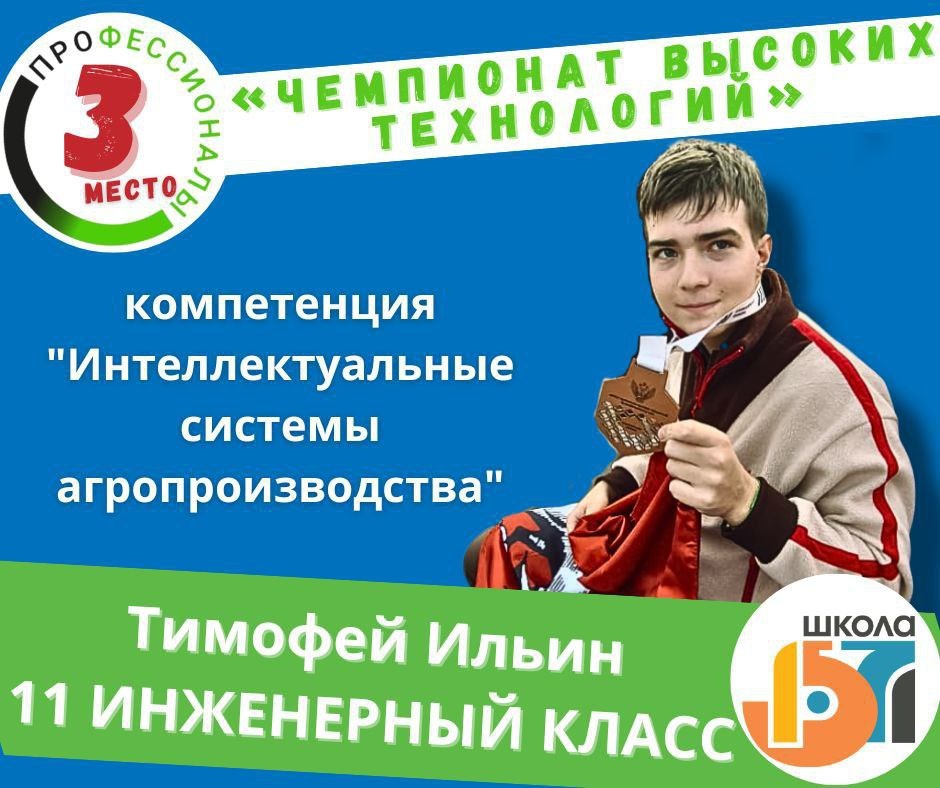 🥉Тимофей Ильин, ученик 11«А» проекта «Инженерный класс в московской школе», занял третье место в итоговом межрегиональном этапе «Чемпионата высоких технологий» в компетенции «Интеллектуальные системы агропроизводства» в возрастной категории «Юниоры» Всероссийского чемпионатного движения по профессиональному мастерству «Профессионалы». 👏Молодец! Гордимся! #ДОНМ #ШколыКолледжиМосквы #Гордость1571