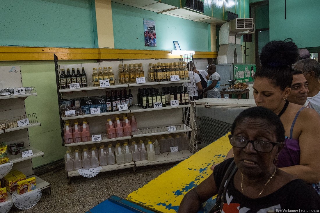 08. Из-за экономической блокады и бедности населения продуктовые магазины в Кубе тоже по большей части пустые. Кубинские магазины делятся на два типа: есть обычные социальные магазины, в которые ходит большинство кубинцев и где товаров крайне мало, и есть магазины для людей с деньгами, которые готовы переплачивать за редкие продукты.