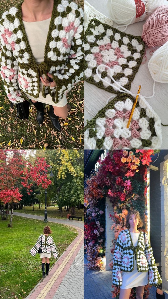 😻 Посмотрите, какой потрясающий кардиган из нашей пряжи связала прекрасная Валерия! 🍂🧶🌾🌸🧺