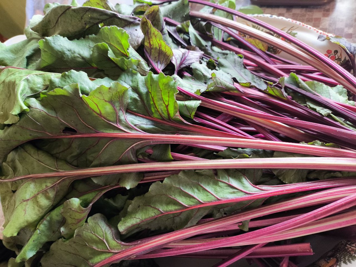 - Свекольную ботву моем и отделяем стебли от листьев.