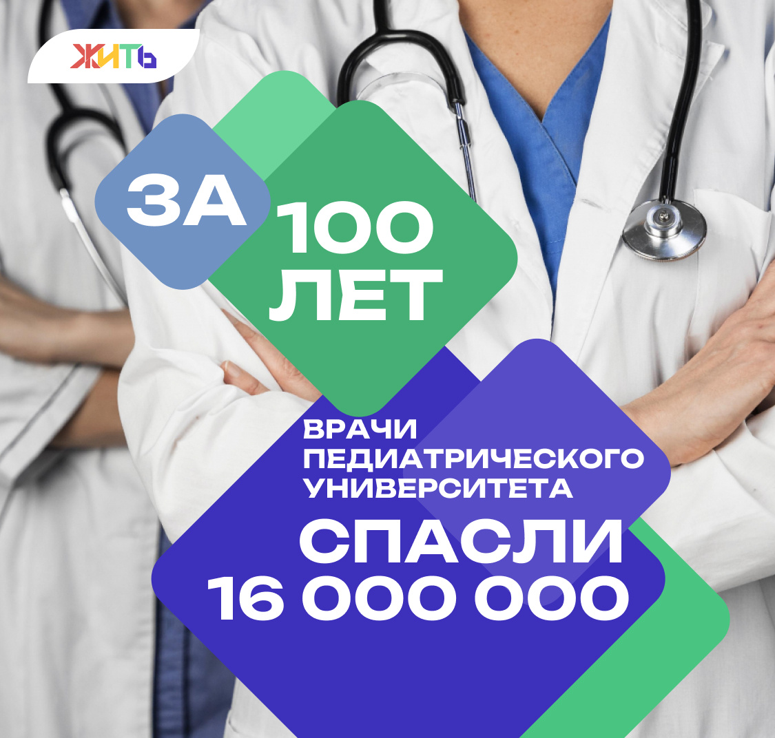 Санкт‑Петербургский государственный педиатрический медицинский университет отметил 100-летие и 120-летие университетской клиники. Сегодня этот единственный в мире вуз педиатрического профиля. За 100 лет из стен университета вышли 50 тысяч врачей. В России нет региона, где не трудились бы его выпускники. Они вылечили порядка 16 миллионов пациентов. #цифрадня@zhit