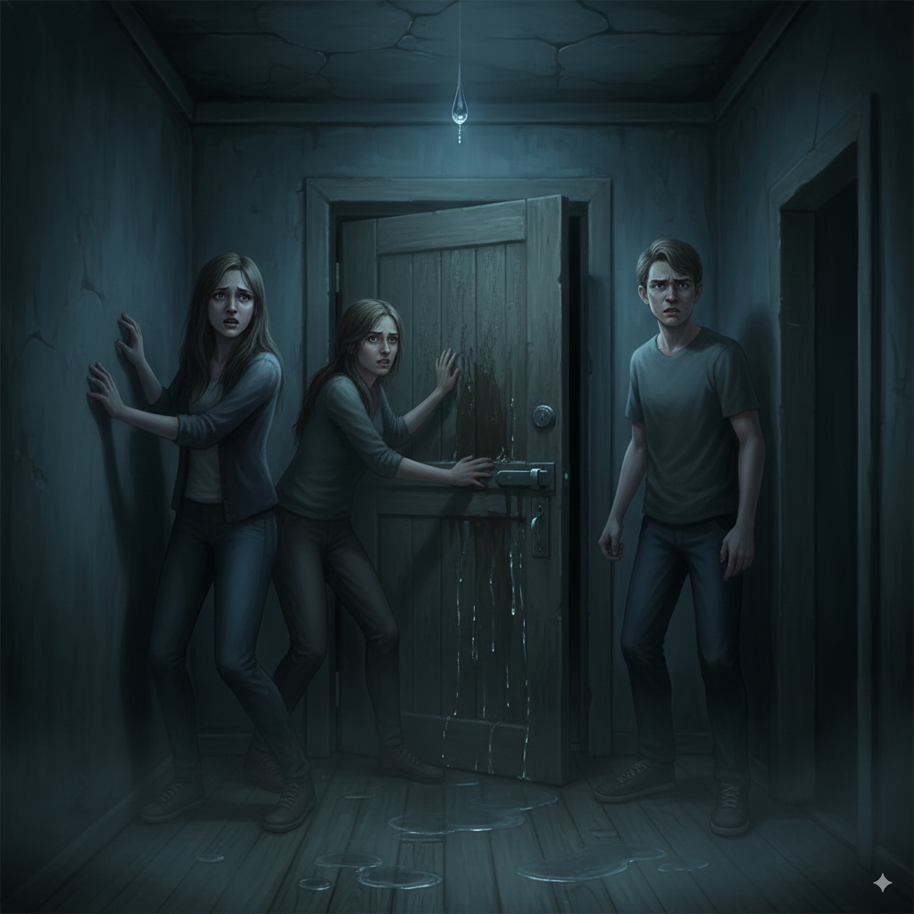 Внутри — пусто. Кровать застелена, шкаф закрыт. Только на полу — мокрые следы, будто кто-то босиком прошёлся по ковру.