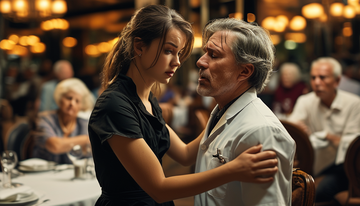 «Поверните его на бок, чтобы не захлебнулся, если будет рвота», — уже спокойнее сказала я официанту, который смотрел на меня с нескрываемым восхищением. — «И принесите воды и салфеток».