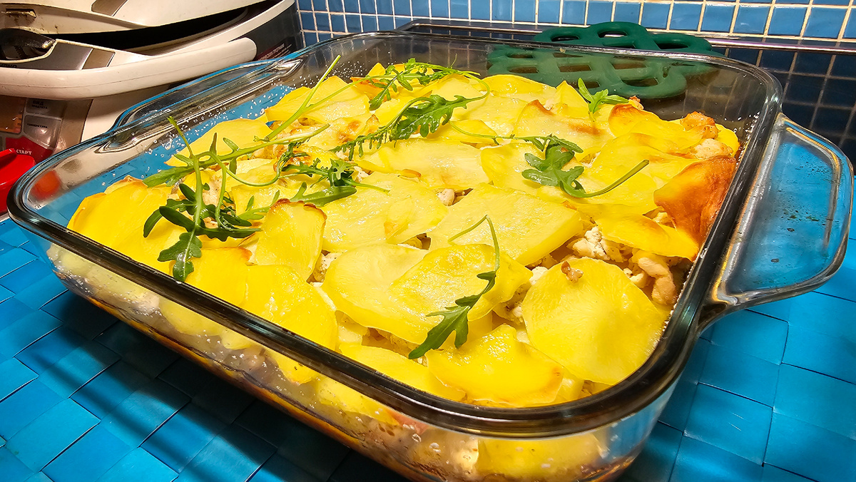 💁♀Вчера на ночь проголодалась и приготовила, вкуснее не помню что ела)) 🍛 🥗Практически из двух ингредиентов, что есть в холодильнике, а большая и вкусная получается запеканка. 📌Куриная грудка Картофель 3-4 шт 3-4 яйца 3 ст.л сметаны или греч.йогурта Масло Соль, специи, зелень ✅Куриное филе порубить, добавить изм.чеснок, специи, соль, масло, обжарить; ✅картошку нарезать тонкими пластами и варить до полуготовности, минут 5, воду слить. ✅Соус: 3 яйца перемешать вилкой со сметаной, добавить соль, специи. ✅В форму выложить слоями: картошка, мясо, соус; картошка, мясо, соус. ♨️Запекать в разогретой духовке 40-50 мин при 180-190С. Я люблю, чтобы сверху корочка хрустела👍 Можно посыпать тертым сыром. Незатейливо, вкусно и сытно!👌 #запеканка@tiptoptv #рецепт@tiptoptv