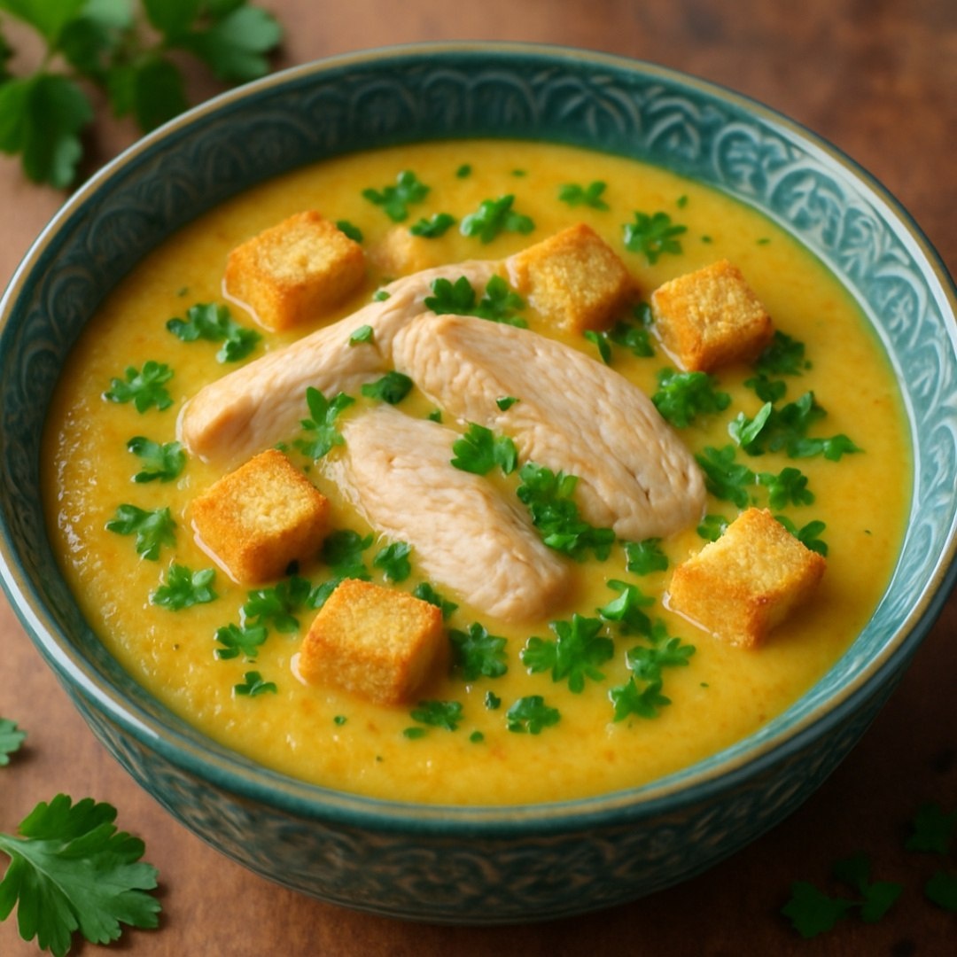Овощной суп-пюре с индейкой Ингредиенты ⤵️ 🔸 Филе индейки – 300 г 🔸 Картофель – 3 шт. 🔸 Морковь – 1 шт. 🔸 Цукини – 1 шт. 🔸 Лук репчатый – 1 шт. 🔸 Чеснок – 2 зубчика 🔸 Сливки 10% – 100 мл 🔸 Оливковое масло – 2 ст. л. 🔸 Соль, перец, тимьян – 1 щепотка 🔸 Сухарики - 30 г 🔸 Зелень – 1 пучок Приготовление 🍲 1. Индейку нарезать кубиками, обжарить на оливковом масле до лёгкой корочки. 2. Лук и чеснок пассеровать до прозрачности, добавить нарезанную морковь, затем картофель и цукини. 3. Залить овощи и индейку 1 литром воды, варить 20 минут до мягкости овощей. 4. Погружным блендером измельчить суп до кремообразной consistency. 5. Добавить сливки, прогреть 5 минут на медленном огне. Приправить специями. 6. Подавать с сухариками и свежей зеленью. Ароматно, нежно и по-домашнему сытно! Рецепт дня #суп_пюре #овощной_суп #индейка #мясо #птица #филе #овощи #обед