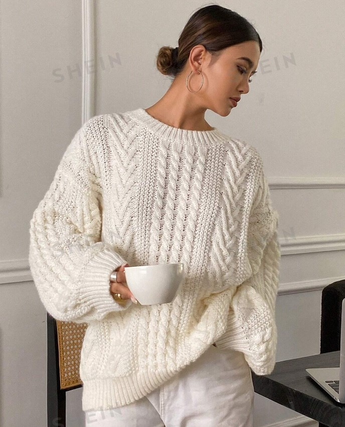Узор на передней части, спине и рукавах в виде жгутов и перемещения петель — это настоящее произведение вязального искусства! Такой джемпер станет ярким акцентом в вашем гардеробе и выделит вас из толпы.