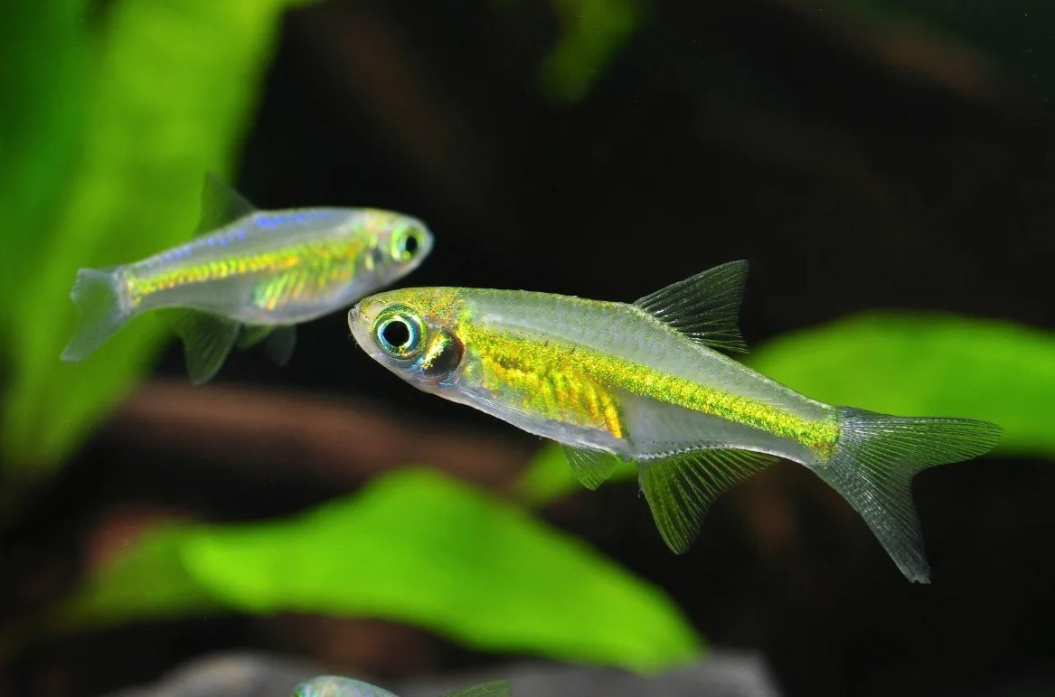 Расбора Куботаи - Microdevario kubotai Расбора Куботаи (Microdevario kubotai) — яркая звезда наноаквариумов, привлекающая зеленоватым неоновым отливом, который переливается под светом. Эти крохотные рыбки, размером до 2 см, родом из Таиланда, идеально подходят для аквариумов от 30 литров. Их активное стайное поведение оживляет аквариум, а мирный, но слегка пугливый нрав делает их подходящими для начинающих при условии стабильных параметров воды. Куботаи чуть смелее своих родственников, вроде Расборы Бригитты, но требуют укрытий для комфорта. В стае от 8–10 особей они раскрывают свою энергию, плавая в толще воды и создавая динамичную картину. Их деликатный размер и ненавязчивый характер требуют осторожного подбора соседей. Если вы ищете рыбку, которая добавит аквариуму искры без лишней агрессии, Расбора Куботаи — ваш выбор. Особенности поведения и совместимость Куботаи — мирные, активные и стайные рыбки. В группе от 8 особей они смело исследуют аквариум, но в одиночестве или малых г