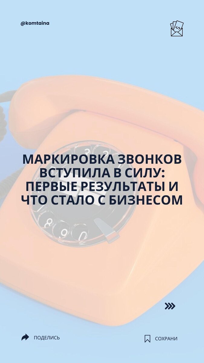 ☎️ Маркировка звонков вступила в силу: первые результаты и что стало с бизнесом Звонки «с неизвестного номера» ушли в прошлое. С 1 сентября операторы блокируют немаркированные вызовы, а штрафы за нарушения — до миллиона. Клиенты теперь видят, кто звонит и с какой целью. Для бизнеса это не только обязанность, но и шанс повысить конверсию и вернуть доверие. 👉 Подробности и первые кейсы — в полном материале. Что принесёт маркировка звонков бизнесу в итоге? 🔥 Повышение конверсии и лояльности клиентов. 🤔 Риски штрафов и новые расходы на подключение. @komtaina