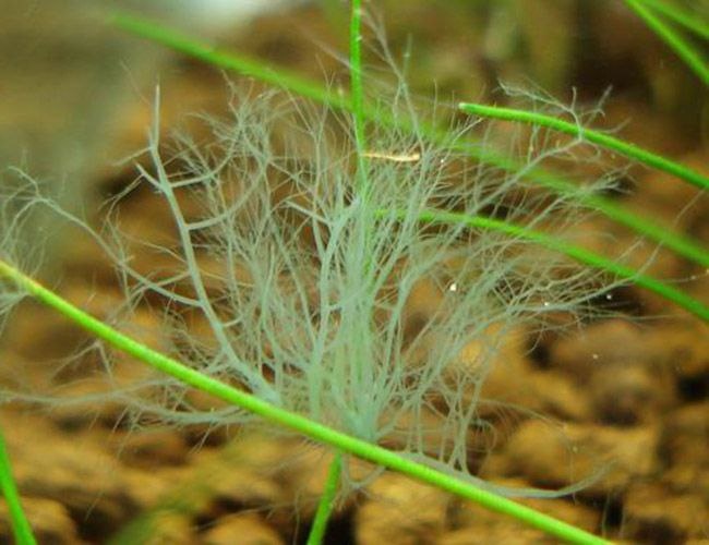 🌿 Олений рог: подробный гайд по борьбе и профилактике (Часть 1/3) На нашем канале уже была статья про водоросли: Борьба с водорослями и их типы в пресноводном аквариуме. Олений рог — одна из самых неприятных проблем в аквариумистике. Эти нитчатые водоросли серо-зелёного или чёрного цвета быстро распространяются, оплетая растения, декорации и оборудование. В этом посте мы разберём, что такое олений рог, почему он появляется и как с ним бороться. — — — ### 🔍 Что такое олений рог? Олений рог — это нитчатые водоросли, которые образуют длинные, сильно ветвящиеся нити, напоминающие рога оленя. Они могут быть серо-зелёного, тёмно-зелёного или даже чёрного цвета. Эти водоросли прикрепляются к листьям растений, камням, корягам, фильтрам и другим поверхностям, создавая эффект 'паутины'. Важно: Олений рог отличается от других нитчатых водорослей своей ветвистой структурой и более плотным строением. Он особенно опасен, так как может быстро захватывать большие площади. #### Особенности цвет