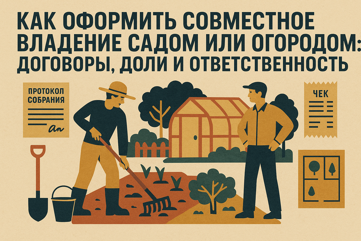 Совместный сад или огород — это не только уютные грядки и общая копилка на удобрения, но и источник частых споров: «кто поливает», «кто посадил крыжовник», «кому достанется яблоня, если кто-то продаст свою долю». Если вы собираетесь вести участок вместе с родственниками, друзьями или соседями по даче, лучше потратить час-другой на юридическую ясность — и не платить дорого за исправление конфликтов потом. В этой статье — подробный практический гид: какие формы совместного владения бывают, какие права у каждого из участников по закону, какие пункты обязателен включить в договор, шаблоны формулировок, типичные ошибки и что делать при споре. Я даю конкретные формулировки, чек-листы и реальную практику — чтобы вы могли оформить всё быстро и без юриста, но при необходимости знать, куда удариться за помощью. ✍️