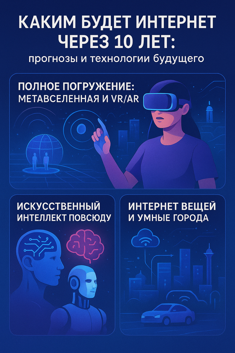 Интернет через 10 лет станет не просто быстрее и удобнее. Он полностью изменит нашу жизнь, превратит её в сочетание реального и виртуального, даст новые возможности для бизнеса, медицины, образования. Но вместе с этим принесёт вызовы: вопросы безопасности, конфиденциальности и психологической зависимости.