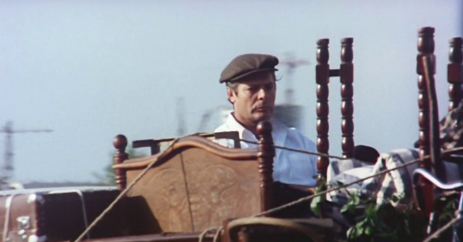 София Лорен, погуляв, по Москве, уехала к себе в Милан. Теперь очередь Марчелло Мастроянни знакомиться со столицей нашей Родины. Для начала Мастроянни покатался по Москве в кузове грузовичка УАЗ-452Д. Ему и его жене Маше дали квартиру в новостройке. Вот со всем имуществом они едут к новому месту жительства. Мировая звезда любуется видами Москвы.