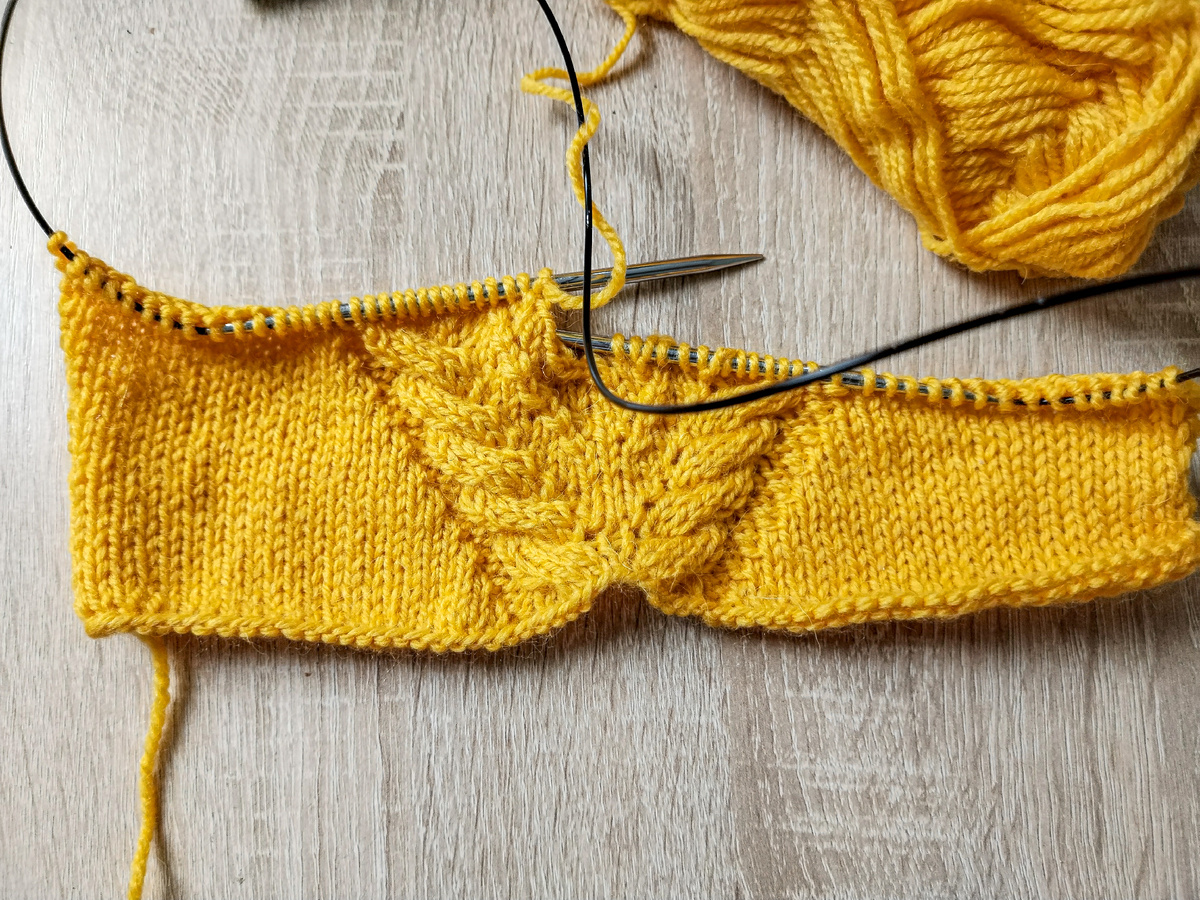 Образец обязателен. Даже если вы вяжете косы с закрытыми глазами, проверьте плотность и как узор ведёт себя на изгибах.