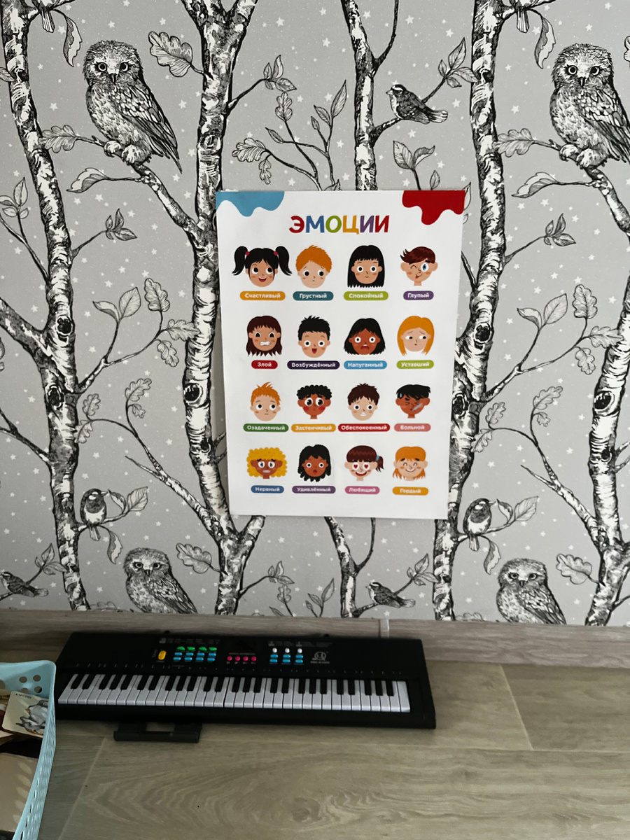 Всем привет! Я продолжаю делиться нашим опытом «обучения через стены». Сегодня — главный хит нашей детской: алфавит с картинками. Как мама малыша, который в год и два месяца уже вовсю показывает, где мячик, а где кошечка, скажу честно: я не ожидала такого эффекта. Я выбрала самый классический вариант: яркие буквы, а рядом — понятные и добрые изображения (А — Аист, Б — Белка, М — Мяч). И вот что произошло буквально за месяц. Мой сын теперь сам подходит к этому плакату, тычет в него пальчиком и смотрит на меня вопросительно. Я называю слово — он находит его взглядом и довольно улыбается! Он уже уверенно узнает мяч, кошку, солнце, яблоко и еще с десяток предметов. Это не магия, это и есть та самая работа мозга, которую я, как врач, хотела мягко простимулировать. Почему именно алфавит с картинками сработал так хорошо? 1. Это не абстракция, а узнавание. Для ребенка в 1 год и 2 месяца буква «М» — это просто закорючка. А вот Мяч — это реальный, знакомый объект, который можно катать. М