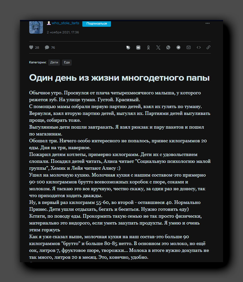 В ноябре 2021-го, Тепляков ещё бодро писал в «живой журнал» отчёты «один день из жизни многодетного папы».