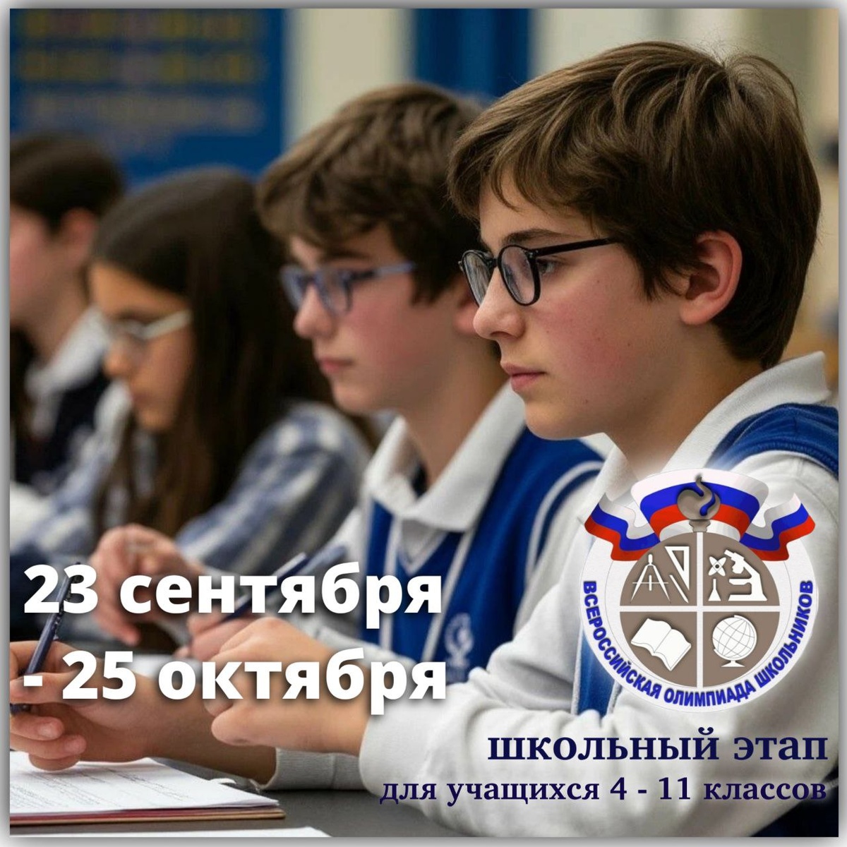 ⚡🔊23 сентября - 25 октября 2025 г. пройдет Школьный этап Всероссийской олимпиады школьников 4-11 классов Всероссийская олимпиада школьников — крупнейшее интеллектуальное соревнование, в котором ежегодно принимают участие более 6 млн школьников. Олимпиада проводится в четыре этапа (школьный, муниципальный, региональный и заключительный) по 24 предметам. Участником школьного этапа может стать любой желающий учащийся 4−11 классов. Победители и призеры заключительного этапа имеют право поступления в вузы без вступительных испытаний. Тренажер для решения задач прошлых лет по 6 естественно-научным предметам, координируемых «Сириусом», доступен по ссылке. Вся актуальная информация о проведении школьного этапа 2025 г. будет опубликована на сайте.