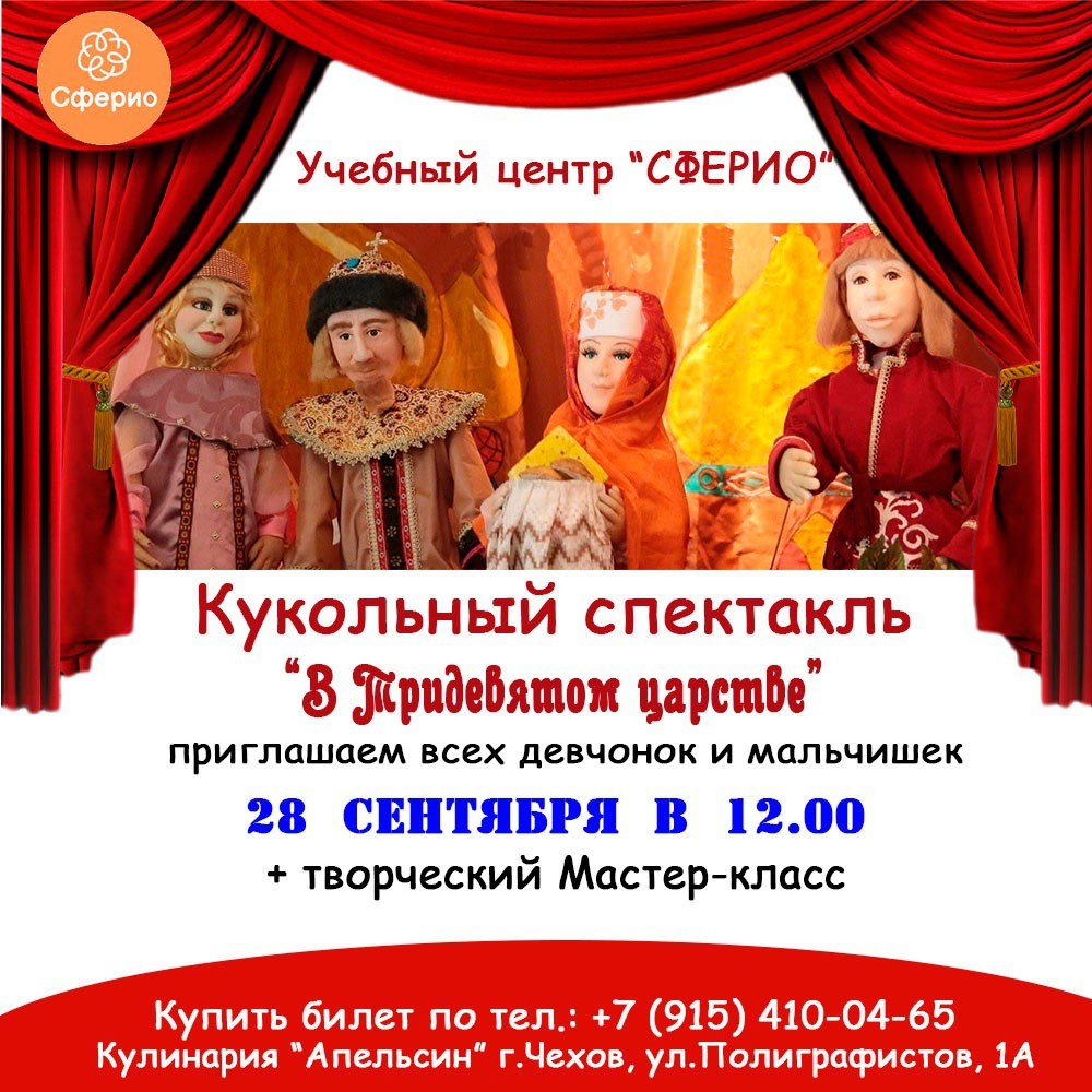 ✨ 💢ВНИМАНИЕ! 28 Сентября в 12.00 - Домодедовский КУКОЛЬНЫЙ ТЕАТР у нас в гостях!🔥 А также Вас ждут МАСТЕР-КЛАССЫ и ПОДАРОК!💥 📌Только у нас, Домодедовский КУКОЛЬНЫЙ ТЕАТР со своим спектаклем "В ТРИДЕВЯТОМ ЦАРСТВЕ"! 📌После спектакля, мы подготовили серию интересных и познавательных МАСТЕР-КЛАССОВ!💫 📌А также каждого ребёнка ждёт сладкий ПОДАРОК 🎁 ВХОД ПО ПРИГЛАСИТЕЛЬНЫМ БИЛЕТАМ! 📆 28.09.2025 🕛 12:00 🏢 Учебный центр "Сферио" 📍 г. Чехов,ул. Полиграфистов, 6 (Вход со двора, подъезд 2, этаж 3) 🔗 Забронировать: https://wa.me/+79154100465 Наши соцсети 📲⬇️ ➡️ ВК https://vk.com/sferio_kids ➡️ ТГ https://dzen.ru/id/672e115c65592e5989376c34 ➡️ Продленка https://vk.com/prodlenkachehov ➡️ Школа https://vk.com/sferio_school 💥 Подпишись и получи подарок 💥 Наша What'sApp группа #webСферио