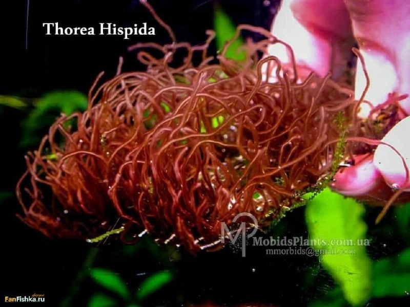 🌿 Торея Хиспида: Уникальная Водоросль для Вашего Аквариума Торея хиспида (*Thoreya hispida*) — это необычная и редкая водоросль, которая привлекает внимание аквариумистов своим необычным внешним видом и интересными требованиями к условиям содержания. Давайте разберемся, почему эта водоросль заслуживает особого внимания. 🌍 Происхождение и Естественная Среда Обитания - Торея хиспида встречается в природе в тропических регионах Юго-Восточной Азии, особенно в медленно текущих реках и ручьях. - Она предпочитает чистую воду с умеренным течением и богатым содержанием минералов. - В естественной среде обитания торея часто растет на камнях, корягах и других твердых поверхностях. 🌱 Особенности Роста и Внешний Вид - Структура: Торея хиспида образует плотные, бархатистые наросты, напоминающие мох или мелкие волоски. Эти "волоски" могут достигать длины 1–3 мм. - Цвет: От светло-зеленого до темно-зеленого, иногда с легким голубоватым оттенком. - Скорость роста: Медленная. При благоприятных у