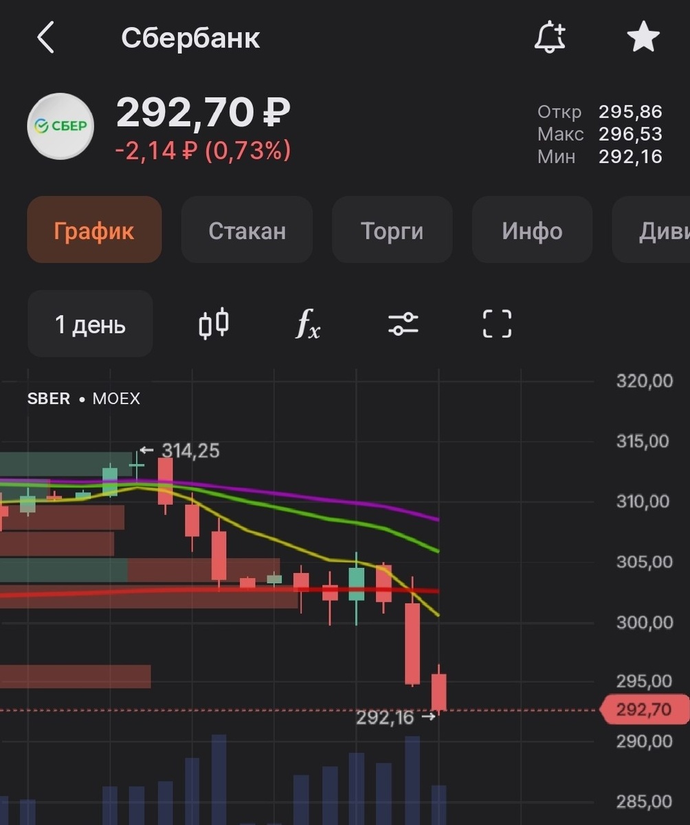 #SBER Сбер дневной - ниже дневной EMA55 уверенно, далее свечной паттерн 3 солдата - сигнал возможного бедствия на продолжение нисходящего