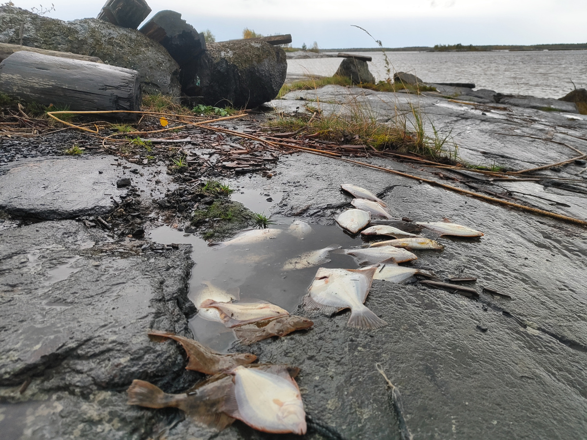 После рыбалки высыпал всю рыбу на скалу.