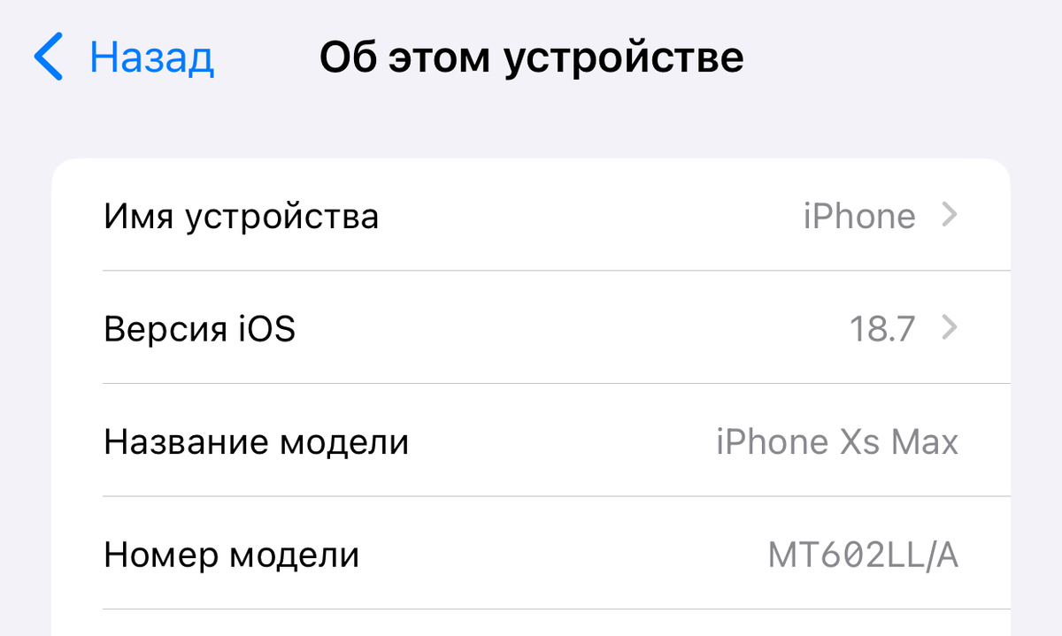 В этом году Apple ещё сильнее раздробила линейку по регионам. Разница уже не только в SIM-картах, но и в автономности, функциях и ограничениях. Зайдите в Настройки → Основные → Об этом устройстве и нажмите на «Номер модели». Формат Axxxx подскажет регион: И да: все iPhone 17 поддерживают LTE-бенды, нужные в России (3, 7, 20, 34). 👉 А вы какой вариант предпочли бы — eSIM-only, SIM+eSIM или SIM+SIM?