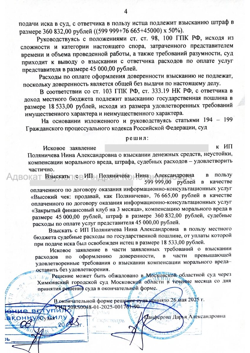 Возврат денег за обучение. Решение суда.