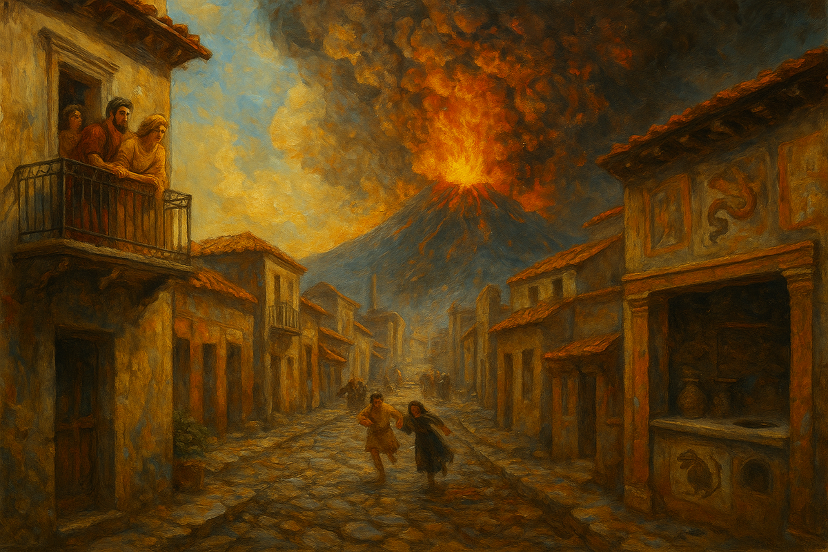На улице Балконов в Помпеях — среди потрескавшихся стен, едва заметных надписей и фасадов, где ещё живы фрески — археологи нашли тела. Люди, которые не успели спастись. Они спрятались в закусочной, надеясь, что каменные стены защитят. Это место называлось Thermopolium — вроде бы обычная древнеримская точка быстрого питания. Внутри до сих пор видны остатки еды, кости животных и фрески, будто вырезанные из памяти. Улица Балконов — Vicolo dei Balconi — долго оставалась закрытой для раскопок. И как только её начали расчищать, началось нечто, что трудно описать иначе как путешествие в замерший момент времени.