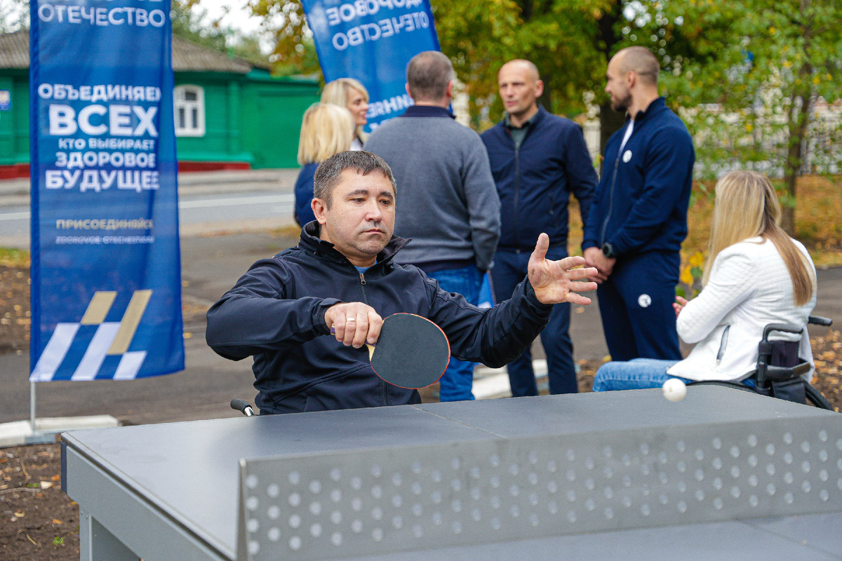 Современный спортивный кластер рассчитан на занятия спортом людей разных возрастов и уровней подготовки. Он расположился на площади 627 м² и включает в себя: площадку для занятий кроссфитом, воркаут-зону с инклюзивным оборудованием, футбольно-стритбольную площадку, зону для подготовки и сдачи нормативов ГТО, зону настольного тенниса, спортивно-игровой комплекс для детей от 3 лет, а также свободную площадку, на которой амбассадоры Движения «Здоровое Отечество» будут проводить тренировки для всех желающих в рамках проекта «Марафон зарядок». Для посетителей площадки оборудована велопарковка и информационный стенд с программой тренировок «Тренировка за 30 минут».