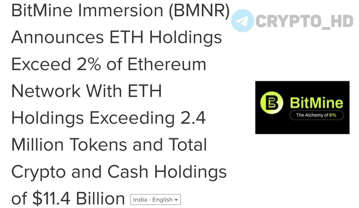 π Π BitMine ΠΊΡΠΏΠΈΠ»ΠΈ #ETH ΡΠΆΠ΅ Π½Π° $10,000,000,000 β ΡΠ΅Π»ΠΈΠ·