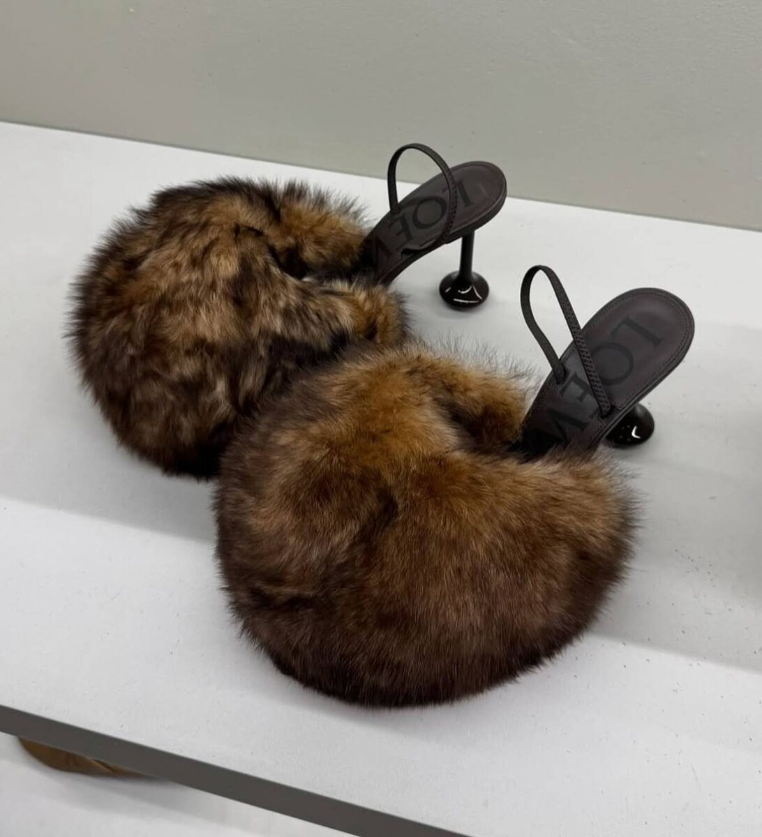 Держим ноги в тепле. Ну или хотя бы пальчики. Можем только гадать, на какую погоду рассчитаны новые слингбэки Loewe, но готовы осторожно предположить, что они составят идеальную пару к противоречивому наряду из серии «шуба + шорты».