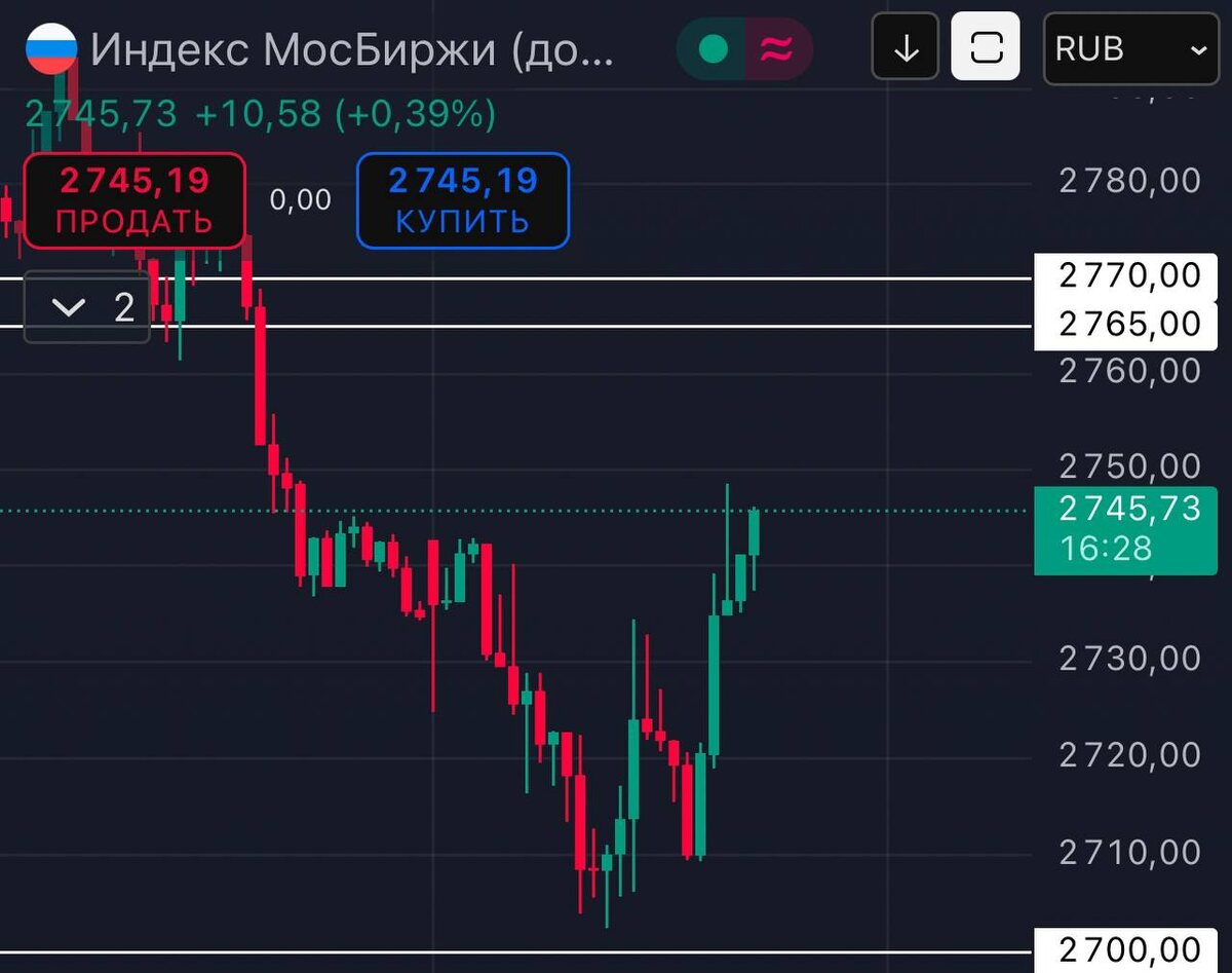 ✅ Как закрывается рынок? Что будет дальше? Куда идем? ❌ Сегодня утром рынок валился и все начали кричать про крах и обвал, однако как только цена пришла к 2700 не сразу, но пошел отскок. В моменте мешали новости, но как только все увидели, что негатива нет, начался рост. В итоге после долгого падения сформировалась первая разворотная свечка, с длинным фитилем снизу. Плюсом ко всему не забываем про то, что рынок находится в сильнейшей перепроданности. 📝 Поэтому в ближайшее время жду роста к 2750-70, а там дальше будем смотреть по факту. Приоритет на завтра от лонга, но лучше всего их взять не на продолжение движения, а на локальном отскоке, что может быть. Утром все подробно напишу. Всем классного вечера! 🤝