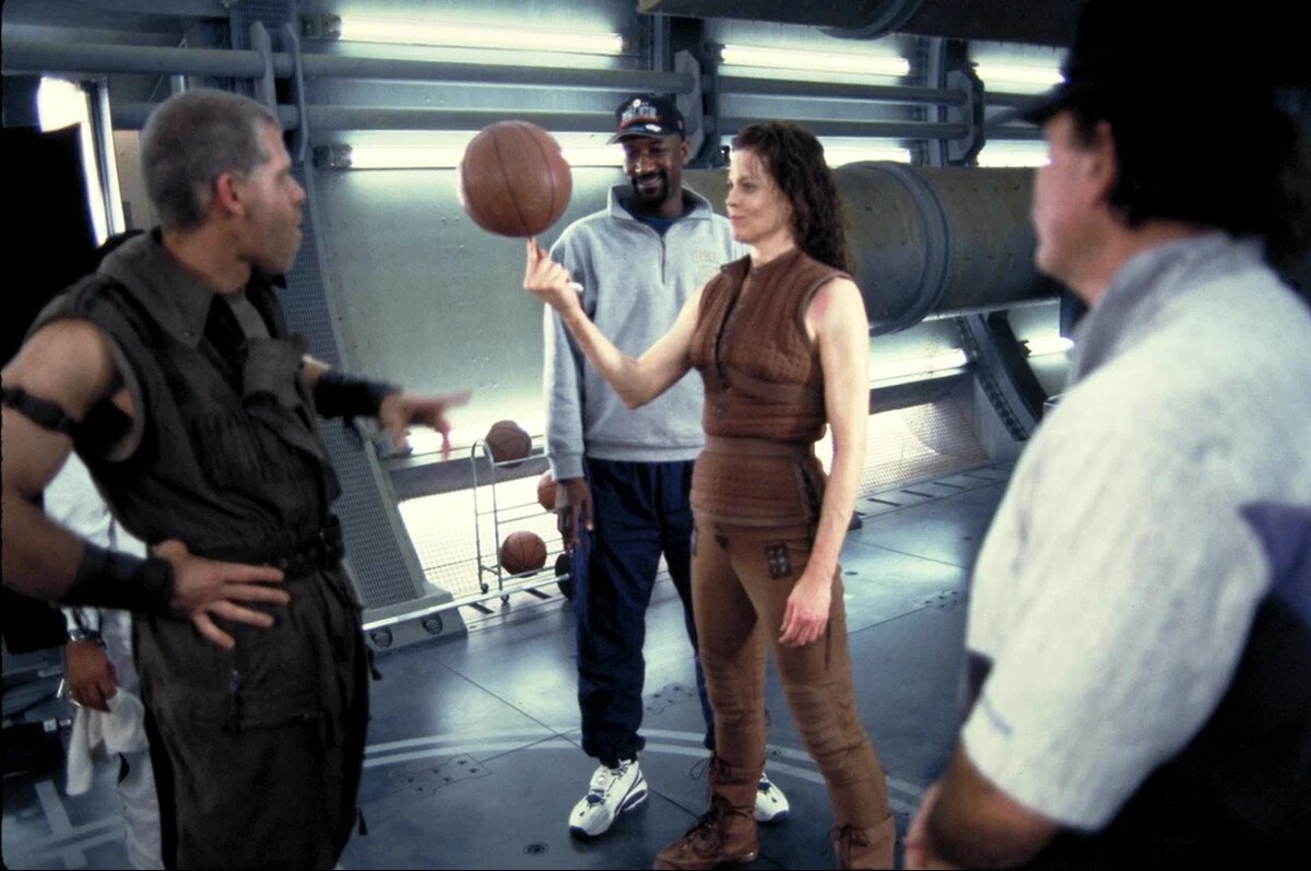 В одной из сцен фильма «Чужой: Воскрешение» Рипли в исполнении Сигурни Уивер поворачивается спиной к баскетбольному кольцу и забрасывает мяч с первого раза. То же самое произошло и на съемочной площадке, однако к этому моменту Сигурни подходила планомерно. Она тренировалась на протяжении нескольких недель, чтобы исполнить сцену без каких-либо ухищрений. При этом режиссер не поверил актрисе, что она сможет провернуть задуманное даже за сотню дублей, поэтому он хотел, чтобы Сигурни кинула мяч, он скрылся за кадром, а уже в следующем кадре появился бы другой мяч, который залетел бы прямо в корзину. Сигурни попросила дать ей шанс, бросила мяч и забила с первого раза. Позже она заявила, что этот момент стал третьим из чудес в ее жизни после рождения дочери и свадьбы.