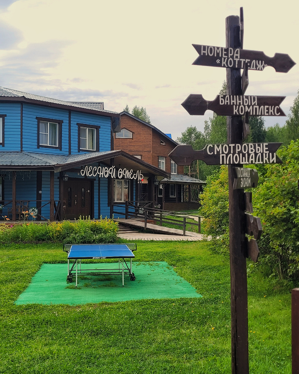 ...очень симпатичный — с деревянными фотогеничными домиками. По территории прыгают кролики. Повсюду качели, беседки, лавки. Есть свой пляж на берегу Пинеги. Но так как конкурентов нет, цены немного покусываются. У нас была половина домика — 15 тысяч рублей в сутки.